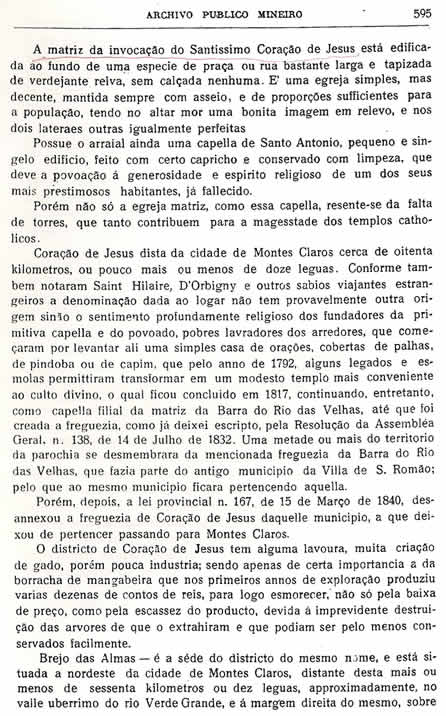 Transcrição da Revista do Archivo Público Mineiro, editada em Ouro Preto, então capital de Minas, em 1897. O conteúdo, doze anos antes, em 1885, saiu no primeiro jornal de Montes Claros, “Correio do Norte”, fundado e editado pelo autor – o depois desembargador Antônio Augusto Veloso, pai da imprensa de Montes Claros. É o mais antigo documento sobre a história de Montes Claros - Parte 32 - (As partes anteriores estão arquivadas na seção Colunistas - Web - Chorografia)![]() (Continuará, nos próximos dias, até a publicação de toda a "Chorografia") |