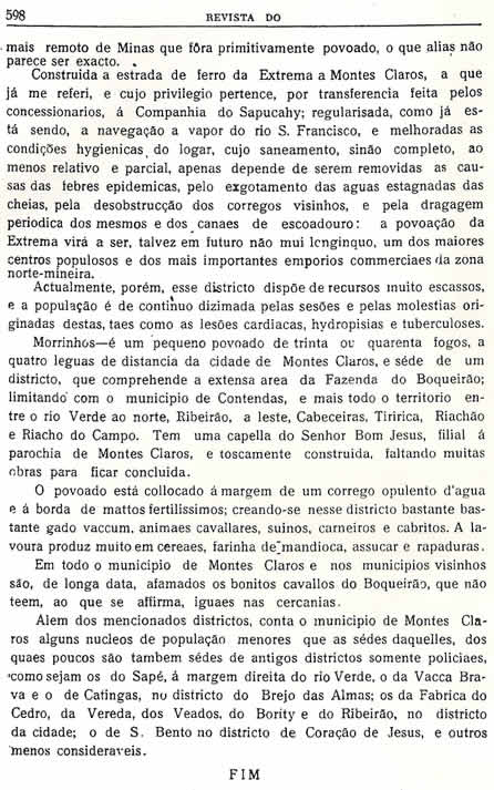 Transcrição da Revista do Archivo Público Mineiro, editada em Ouro Preto, então capital de Minas, em 1897. O conteúdo, doze anos antes, em 1885, saiu no primeiro jornal de Montes Claros, “Correio do Norte”, fundado e editado pelo autor – o depois desembargador Antônio Augusto Veloso, pai da imprensa de Montes Claros. É o mais antigo documento sobre a história de Montes Claros - Última parte - (As partes anteriores estão arquivadas na seção Colunistas - Web - Chorografia)